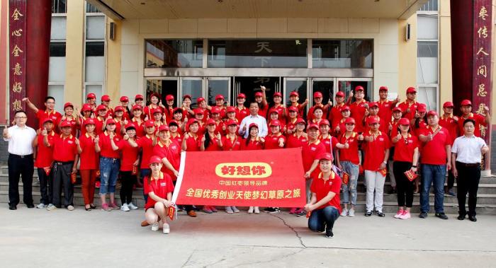 8月14日晨,“呼伦贝尔草原之旅”启动仪式在8868体育官网登录入口工业园区中华枣文化博览中心门前举行,2015年上半年业绩突出的创业天使前30名齐聚一堂,向呼伦贝尔大草原进发。董事长石聚彬、连锁专卖总经理司胤衡、行政中心总经理石聚领、人力资源部总监杨伏玲参加启动仪式。