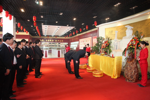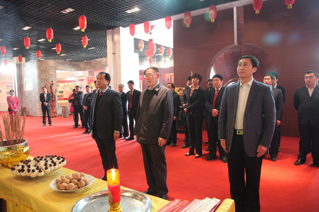 12日上午9时20分,董事长兼总经理石聚彬,公司副总经理、生产中心和销售中心总经理张艳菊,公司副总经理、财务中心总经理张宗成,公司副总经理、董事长助理刘汉超及各部门管理人员代表,在公司总部办公楼前集合、列队。在礼仪人员的引导下,大家有序地步入中华枣文化博物馆,在中华民族的人文始祖轩辕黄帝像前肃立。