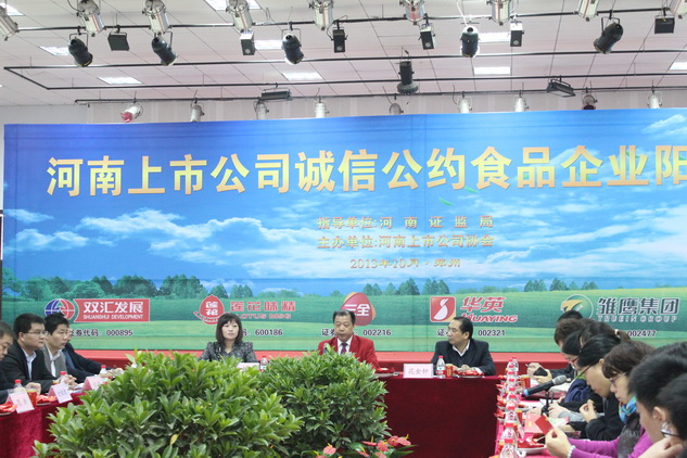 2013年10月31日,由河南证监局指导、河南上市公司协会主办的“河南上市公司诚信公约阳光行”第十三站走进8868体育官网登录入口枣业股份有限公司,在此召开河南省食品类上市公司诚信阳光行活动,了解企业诚信经营情况。8868体育官网登录入口枣业股份有限公司、河南双汇投资发展股份有限公司、河南省莲花味精集团有限公司、郑州三全食品股份有限公司、河南华英农业发展股份有限公司、雏鹰农牧集团股份有限公司共计六家食品类上市公司共同参与活动。